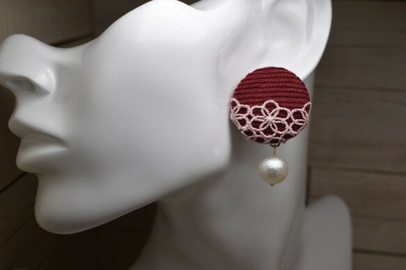 レッドのベース地に上品なピンクレースを重ねた、とっても可愛らしいピアス。